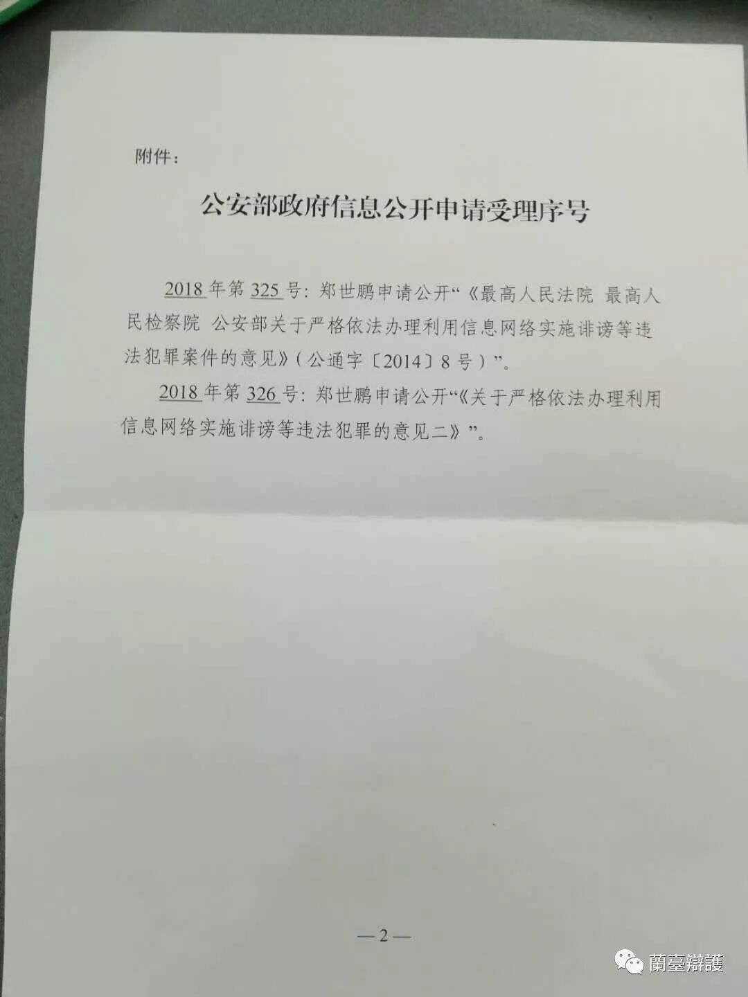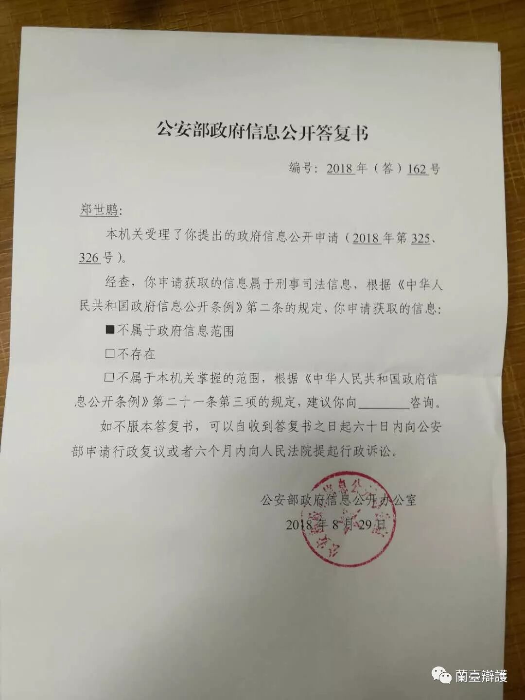 2018年8月,笔者申请信息公开此两个《意见》,并于当月得到了回复。公安部以此两个《意见》属于刑事司法信息不属于政府信息范围不予以公开。因笔者至今未曾看过两个《意见》的文本,故无法对两个《意见》的内容作出任何评价,但就公安部的回复,作以下猜测,或者是对此回复的回应。